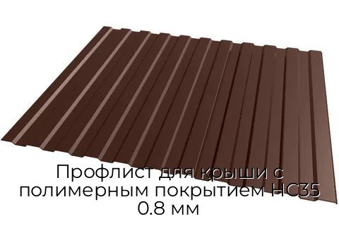 Профлист для крыши с полимерным покрытием НС35 0.8 мм используется в Для крыши. Продукция сочетает надёжность, прочность и длительный срок службы.