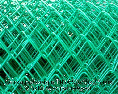 Купить Сетка рабица в ПВХ 55х55х2.5 мм 2.5х10 м коричневая в Москве