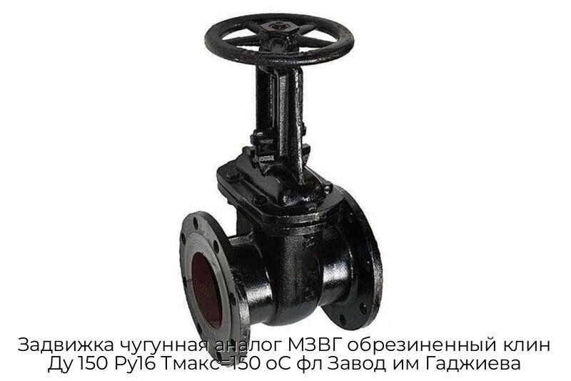 Купить Задвижка чугунная аналог МЗВГ обрезиненный клин Ду 150 Ру16 Тмакс=150 oC фл Завод им Гаджиева в Москве