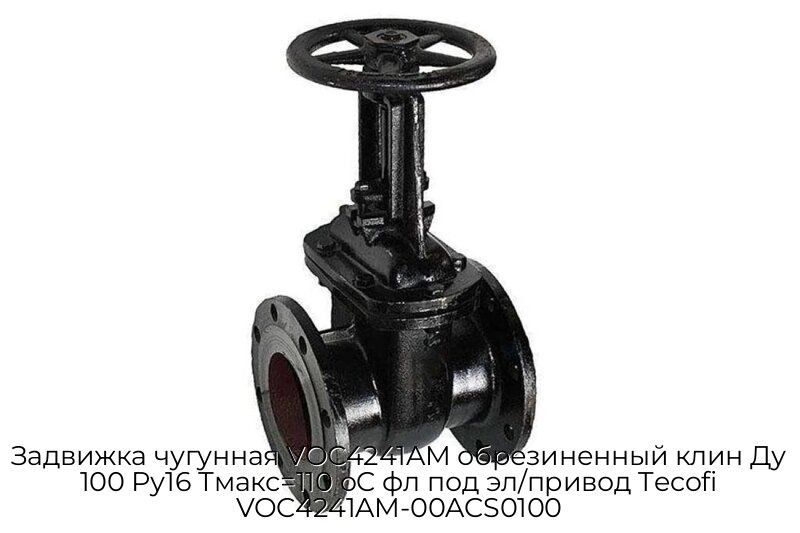 Купить Задвижка чугунная VOC4241AM обрезиненный клин Ду 100 Ру16 Тмакс=110 oC фл под эл/привод Tecofi VOC4241AM-00ACS0100 в Москве